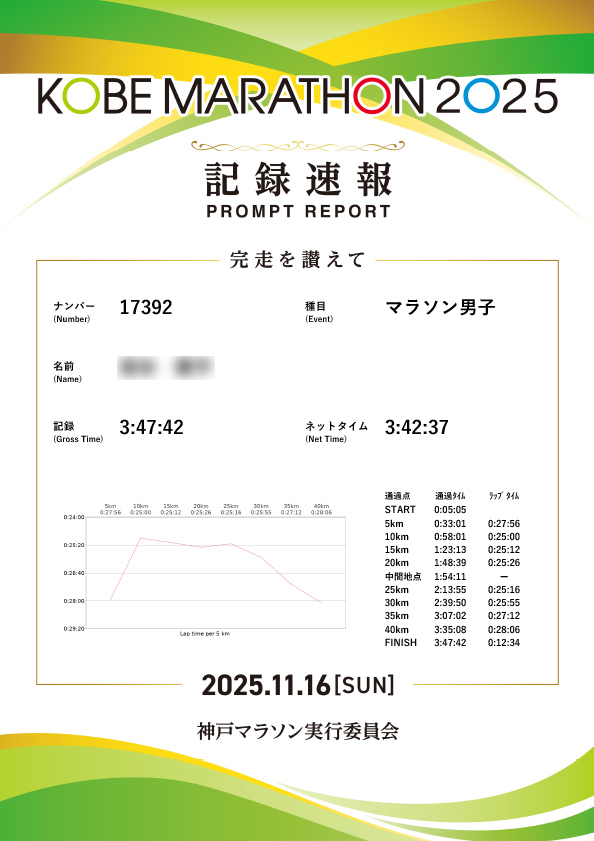 神戸マラソンは沿道の応援がすごく良くて、また走りたいなと思う大会の一つです。今回は台湾サンダルで走りましたが、無事完走できました。新コースで走りやすかったです。次の姫路城マラソンに向けてまた日々練習していきます。